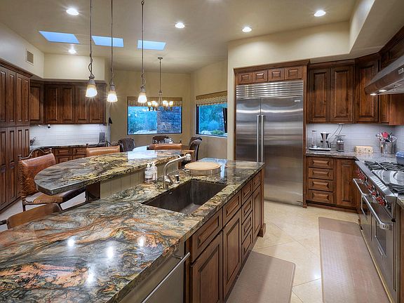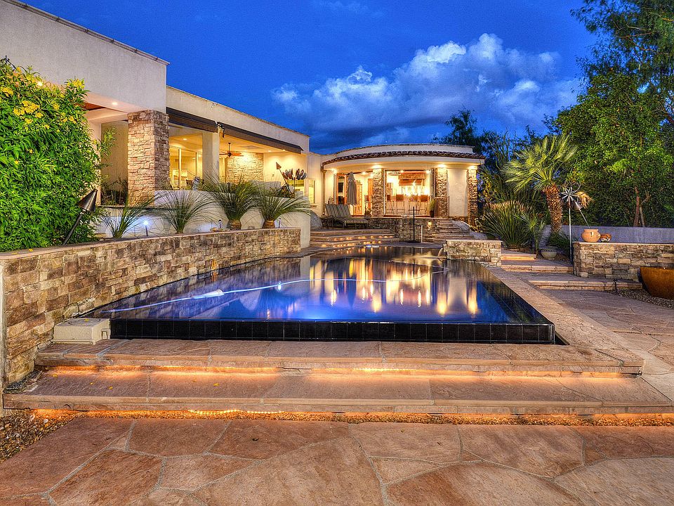 * This truly magnificent custom home featuring city, sunset and mountain views boast spectacular finishes throughout and was crafted with the help of Lori Carrol so surely it will please the most discriminating buyer. From the elegantly appointed kitchen with Wolf professional range, Subzero fridge, wine fridge and stunning granite to the amazing outdoors with negative edge pool, spa, firepit, multiple patios and fully equipped commercial grade kitchen/bar, this home is an entertainer's dream. Greatroom offers spectacular views, hand-hewn walnut floors, rustic fireplace, floor to ceiling windows & media area. Luxurious owner's suite with fabulous spa-like bath. Full tech package throughout the home, oversized garage w/lift & compressor plus new exterior paint. This is a must-see home!