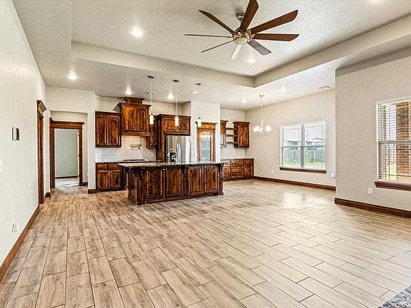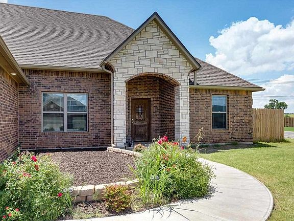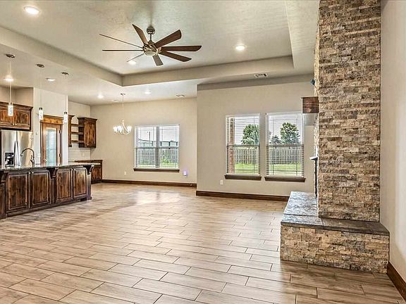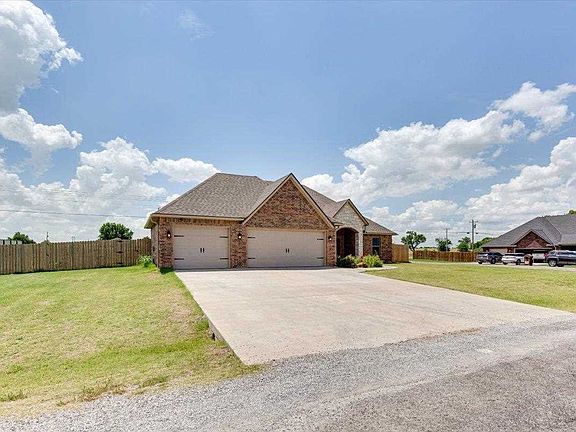 Just listed! A wonderful McDonald Properties custom built 2019 home perfectly placed on an extended sized corner lot giving you plenty of yard space! Walking in you will immediately notice the large and open floor plan with tall ceilings, floor to ceiling stack stone fireplace, and grand windows letting in warm natural lighting. The kitchen brags with Custom knotty alder cabinetry, granite countertops, decorative vent hood, pot filler, drawer microwave, pantry, and a large counter height eat-in bar. The dining area has extra cabinets in a buffet style layout to round out this wonderful space. Heading into the master bedroom through the barn door, you will find a generous master suite offering large walk in closet with built ins, double bathroom sinks, whirl pool tub, and a large tiled shower. On the opposite side of the home you will find 3 additional bedrooms, full bathroom and a half bathroom for guests. Be sure to call Listing Professional Jenifer Patterson today to set up your personal tour 580-512-1626