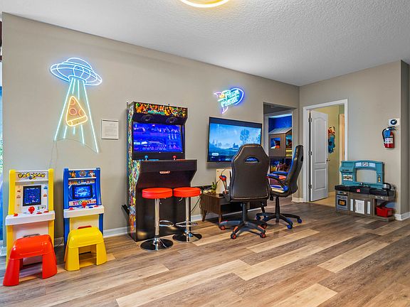 Escape to your own private oasis within the magic of Disney with this luxurious residence in Solterra Resort. Boasting a sparkling private pool perfect for cooling off after a day of thrilling adventures, this home offers six spacious bedrooms and 5.5 bathrooms. Inside, a dedicated game room and a private theater provide entertainment for all ages. Feel at home with the comfy living area and enjoy the convenience of a free washer and dryer. The large full kitchen with stainless steel appliances and spacious indoor and outdoor dining areas make it ideal for family gatherings. Welcome to Ray of Sunshine, where you can relax and cozy up in the spacious family room equipped with a flat screen TV and ample seating for the whole family. The dazzling private pool in your backyard is the ultimate backdrop for your TikTok and YouTube videos. The fully stocked kitchen has everything you need to make a big breakfast before an adventure-filled day in Orlando. Outdoor pool loungers and dining areas enhance your stay, making it a perfect retreat. For an additional fee of $35 per day, you can add pool heating to your reservation. We kindly ask for at least a week's notice. A pet fee of $150 will be applied for bringing a house-trained dog, with prior written notification and approval required. Up to two cars may park side-by-side in the driveway in front of the garage. Located in Davenport, this vacation home is near theme parks and offers easy access to Disney Springs, Old Town, Walt Disney World Resort, Disney's Animal Kingdom Theme Park, Disney's Hollywood Studios, and Epcot. The home is also inside the beautiful Solterra Resort, a gated community with fantastic resort amenities including a clubhouse, resort pool with water slide, cabanas, fitness room, tennis and volleyball courts, children's playground, and recreational area. Solterra is in a great location just minutes from a supermarket and other stores, with an IMAX movie theater and many other stores located at Posner Park, just 10 minutes away. Check-out time is 10AM, and late check-outs may incur a fee of up to $300. The home is a self-catering property, so supplies are not refilled during your stay. Quiet hours are between 10PM and 8AM, and excessive noise should be minimized during this time. There is absolutely no smoking or drugs allowed inside or outside the property, and violations may result in termination of the reservation without refund and/or monetary fines. The home is not baby-proofed, and no third-party bookings are allowed unless agreed upon in writing. Only the number of guests indicated on the reservation are allowed to stay overnight on-premise, unless otherwise agreed upon in writing. Please respect the neighborhood and neighbors, and follow additional guidelines posted within the home. Report damages immediately.