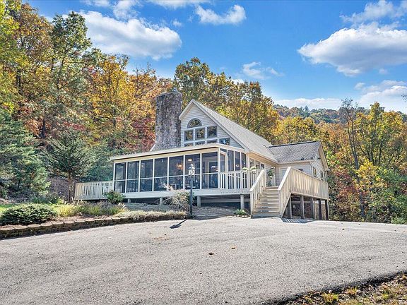 Your mountain oasis w/stunning views awaits! Surrounded by 29 acres, this home offers privacy while still being convenient to area amenities. The open concept entry level w/cathedral ceilings and a beautiful stone fireplace welcomes you w/an abundance of natural light. Entry level features include the most relaxing screened in porch, beautiful wood floors, new kitchen appliances, a primary suite w/tiled shower and claw foot tub, an additional bedroom, full bathroom, walk-in hallway closet and a laundry/mudroom that leads to one of the side decks. A second primary suite is on the upper level with a sitting area/loft. The lower level is complete w/a spacious family room, full kitchen, half bathroom (a shower could be added), recreation room, storage galore and potential for a 4th bedroom. The lower level has exterior doors and easy access to the driveway, making it great potential for living quarters. Enjoy the fresh mountain air or simply relax in the tranquility; this property is a rare gem waiting to be discovered!