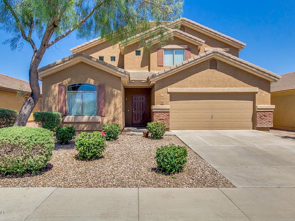 Amazing two story property in Buckeye is on the market & ready to move-in! Take a look at this wonderful 5 beds/3 baths home with gravel front yard and 3 car tandem garage. Inside you will find a large split great room with double-height ceilings & tons of natural light, a spacious family room, and an ample eat-in kitchen. The kitchen includes stainless steel appliances, plenty of storage, tons of counter space, pantry and a convenient island w/breakfast bar. Huge master suite has plush carpet, immaculate bath with double sinks, separate tub/shower, and walk-in closet. The backyard is a blank canvas waiting on future owner to personalize and transform into an oasis. What are you waiting for? Hurry to see this amazing deal! Call today!