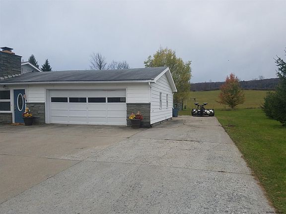 COBLESKILL, 3 br, 1 1/2 ba RANCH. 1588 square foot ranch with 2 car attached garage on a nice 3/4 acre parcel with a scenic and private back yard. Living room with woodstove fireplace insert and a huge family room looking out over the farm fields. Stainless appliances and a new half bath. Huge garage with overhead doors on both the front and back so you can drive through it! Great for trailers or storage! Located about 1 mile outside of the village