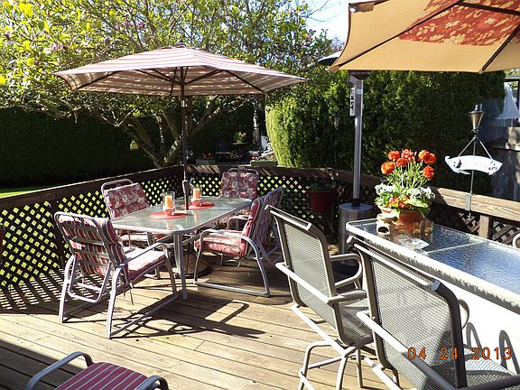Custom built on large duplex lot. Beautifully landscaped with covered barbecue area just off large deck. Hot tub off bedroom. Underground sprinkling system. Electronic Curtains on two large bay windows