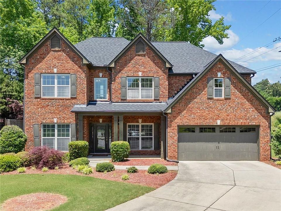 Nestled in a picturesque cul-de-sac within a highly sought-after community, this beautifully maintained home offers an exceptional blend of luxury and comfort. The main level welcomes you with an open foyer, a den perfect for a home office or study, and a separate formal dining room ideal for entertaining guests. The heart of the home is a chef-inspired kitchen featuring stone countertops, a large island, and a walk-in pantry, seamlessly flowing into a spacious two-story family room anchored by a cozy gas log fireplace—perfect for both everyday living and special occasions. Upstairs, the expansive master suite is a true retreat with vaulted ceilings, dual walk-in closets, and a spainspired bath with dual vanities, soaking tub, and separate shower. Additional bedrooms offer generous closet space and flexible layouts to suit your family’s needs. Step outside to a private, beautifully landscaped backyard with a covered concrete patio, ideal for outdoor gatherings or relaxing in a peaceful setting. The home features fresh paint throughout, creating a bright and inviting atmosphere. Located just minutes from parks, recreation centers, walking trails, shopping, and dining, this home provides both convenience and a warm, familyfriendly community environment. Experience the perfect balance of comfort, style, and location in this wonderful Winflow Way residence.