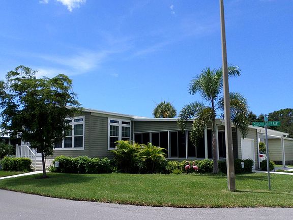 SPECTACULAR HOME FURNISHED AS PICTURED ***Exclusive, by Appointment and shown by listing agent only*** 2017 TURN KEY DREAM HOME!!! Spectacular 2+ bedroom, 2 bath home is turn key furnished from top to bottom as pictured minus a few personal items. Literally pack your bags and move right in! This amazing home boasts 9' ceilings, crown and base moldings and is tastefully decorated throughout. Lovely open concept granite kitchen, indoor laundry/utility room, light gray distressed look laminate flooring, quality etched glass entry door, screened front porch, attractive landscaping and is set on a large corner lot providing covered double drive carport, golf cart garage and large enclosed porch. Located in the resort style, gated community of Camelot Lakes, you will have an endless supply of activities, breath taking scenery and some of the nicest neighbors in Sarasota. Clubhouse renovation includes large kitchen/reception hall, comfy TV room, computer room, library, saunas, billiard room, ceramics room with kiln and state-of-the-art fitness center. Two heated pools overlook beautiful lakes for all day relaxation! Tired of having everything at your fingertips? Take a 7 mile drive to the white sand beaches of Siesta Key. Throw out a line, take a dip or enjoy an energizing walk along the beach. A never ending supply of quaint shops, top restaurants and some of the happiest people you'll ever meet! There are two entries to this home, via screened front porch for your guests or or a side entry into foyer. The hallways are extra-wide and wheelchair accessible. The heart-of-the-home kitchen is perfect for entertaining and of course all Whirlpool appliances brand new in 2017. Soft close cabinets, bar top island, double stainless sink with pull down faucet, granite countertops and tile backsplash. The spacious living room includes quality furnishings exactly as pictured. There are 2 bedrooms plus an office or den. The king size master suite has spacious walk-in closet and en suite with large tiled walk-in shower with bench and safety railings, double sink vanity. The second bedroom is big enough to accommodate 2 queen size beds and also has a large walk-in closet!. The guest bath is conveniently across the hall with tub/shower combination. A laundry/utility room is located off entry foyer and has lots of and stacked front loading washer and dryer.