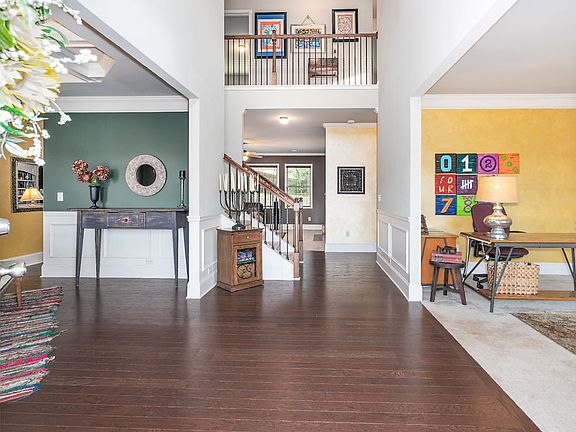 Beautiful 5 bedroom/3 bath home in sought-after Harrison High School district featuring bedroom and full bath on main level, formal living room, separate dining room with coffered ceiling, two-story foyer and hardwood floors. Kitchen opens to breakfast room and great room featuring fireplace and built-in bookcases. Upper level features bonus room with double doors and master suite with trey ceiling and sitting room. Fenced-in backyard features a patio.