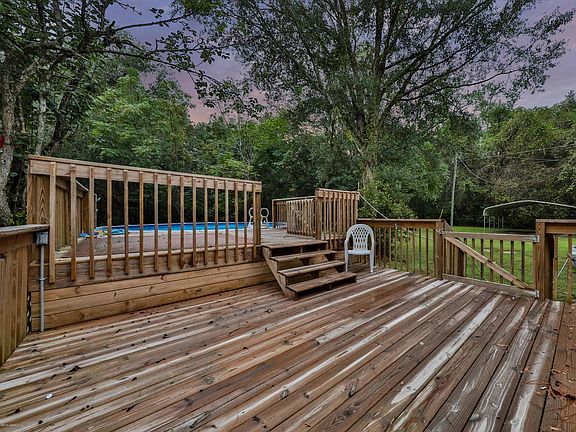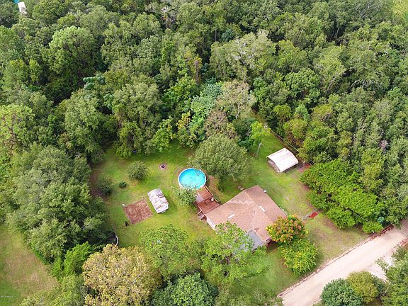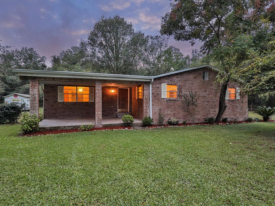 **POOL HOME** This country style home has the breathtaking property, privacy, and size to bring comfort into your life. This open floor plan has 3 bedrooms, 2 bathrooms, an oversized pantry closet in a classic kitchen, utility room sink, and brand new flooring throughout the home. When you step into the fenced backyard you will find an extended deck around the pool with a sitting/BBQ area, a fire pit, a playground for the kids, storage shed, carport that can fit an RV/boat, a full garden, and a picnic area. Check out the Youtube video!! The one acre of land also includes an orange tree, pear tree (baking), jasmine vines on the fence, azaleas, crepe myrtles that bloom in the spring, a pecan tree, a wisteria tree, and so much more. Quick access to JAX and all the country comfort and love!