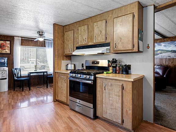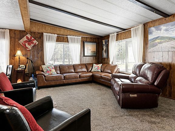 Welcome to the Fully Furnished Get-Away Cabin the owners named it! This charming mf home is nestled on a dead-end paved street, fully fenced and gated. Backs to a serene 65-acre cow ranch. Prepare to be impressed as this manufactured home is wrapped with waterproofing and T1-11. Spacious shop. Enjoy the ponderosa pines, privacy and an array of features, furnishings, and upgrades that make it the perfect retreat. Step inside and be greeted by a tastefully furnished interior, remodeled bathrooms, including a stunning $15,000 walk-in jetted tub in the primary bath and large walk-in shower in the second bath. Outdoor enthusiasts will appreciate the included LL Bean kayaks, perfect for exploring the nearby waterways. Stay comfortable year-round with the heat pump and propane stove. Enjoy outdoor BBQ-ing on the covered back deck. Take advantage of the nearby affordable Quail Run Golf Course, just a short 9-minute drive. Schedule your showing today.