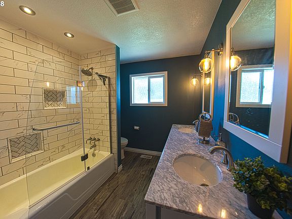 Mostly remodeled/updated daylight ranch on an oversized corner lot. 4 Bedrooms, 2 baths w/ family room down and second wood burning FP. Hardwood floors, updated kitchen and vinyl windows. Spacious deck off dining room. Covered patio, fenced private yard. Newer heat pump w/ gas back up furnace.