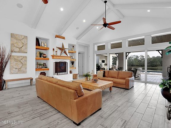 Located in Jacksonville's most exclusive gated neighborhood of Pablo Creek Reserve this classic and richly custom residence built by Fox Signature Homes and designed by award-winning architect, Kari Kovacocy of Group 4 Design, offers all of the gracious conveniences of modern living. From its expansive indoor/outdoor entertaining areas and open floor-plan design provides the best of Florida Lifestyle Living. The home features exceptional quality and distinctive architecture with a flexible design with options for a formal dining, home office or additional en suite bedrooms. The beautifully appointed kitchen serves as the heart of the home, with professional Thermador appliances, spacious island, natural quartzite countertops and backsplash. With grandeur finishes throughout the home including Restoration Hardware vanities, light fixtures and features a 17ft vaulted ceiling in the living room with patio, pool and lake views. For those wine connoisseurs the home highlights a perfect wine and tasting room. A 3-car garage along with 4th oversized garage bay which can be used for boat storage, car or providing a lovely spot for a home gym. Splendid gardens and landscaping is amazing as your family enjoys lakeside breezes & gorgeous water views. The back lanai and summer kitchen areas will crate a casual and relaxing space for family and friends. The laundry room is another multifunctional space with generous amounts of storage and can serve as a nice pocket office or locker bay for the family.