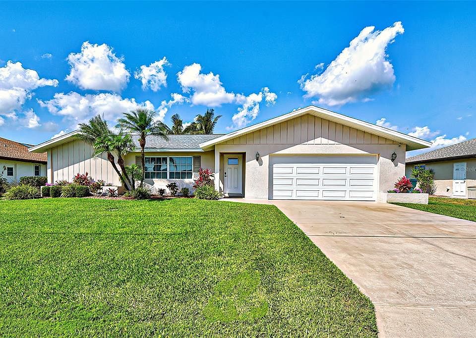 Beautiful Gulf Cove waterfront home, 2 minutes and no bridges to Myakka River, one bridge to Charlotte harbor with 25-foot clearance. This home is being sold turnkey and is just amazing, updated and very well-maintained, new kitchen with granite counters, tile throughout, open floor plan, cathedral ceilings, large lanai and pool area, featuring pavers, outdoor kitchen with sink, ice maker and beveridge refrigerator, Concrete seawall, (2016) 2 lifts 10k & 5.5k large composite dock area with power and water One lift set up for jet skis and yes both jet skis go with the sale!!! roof (2020) ac (2022) pool heater (2018), Wi-Fi controlled irrigation system, public water and sewer. Gulf cove community boat ramp, 10 miles to Englewood beaches, minutes to 6 golf courses, shopping and restaurants.