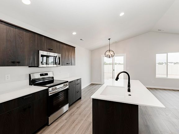Brand New AND Move-in Ready! This home can include full perimeter fencing, front and rear landscaping, window blinds, refrigerator, and washer/dryer. Embrace the comforts of a brand new home in Nampa, Idaho. Live your best single level life in the Bennett 1694! Enter inside to discover a very flexible layout with the kitchen, living room, and primary suite all at the rear of the home, making it easy to forget the world outside exists. The kitchen comes with stainless steel appliances and stylish solid surface countertops, adding both functionality and aesthetics to the kitchen. Recharge as you soak up a double dose of vitamin D from the two living room windows. Spill onto the back patio to enjoy fresh air and perfect Idaho weather. The primary suite feels like a true oasis, tucked away on the opposite end of the home from the other bedrooms for added privacy. Photos are of the actual home!