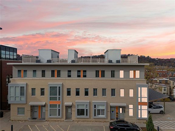 Welcome to McCleary Townhomes! Move in ready, beautifully bright corner unit located in premier gated complex in Lawrenceville. 3-story end unit with rooftop deck! Open first floor space! 10' ceilings! Wood floors throughout! Cook it up in the kitchen - stainless appliances, quartz countertops with seating, charming farmhouse sink! Up the stairs to two bedrooms, full hall bathroom and laundry. Situated on the third floor, its primary suite offers privacy, 2 closets, & relaxing spa like bathroom with soaking tub, double vanity, marble flooring and spacious shower. Entertain on the large, private roof top with panoramic views up and down the river. Amenities include gated, assigned covered parking, a dog-wash station, and fitness center. Steps from popular Butler Street restaurants and shops, easy access to everything Pittsburgh! Universities, hospitals, Zoo, Shadyside, Strip District and Downtown - all just minutes away.