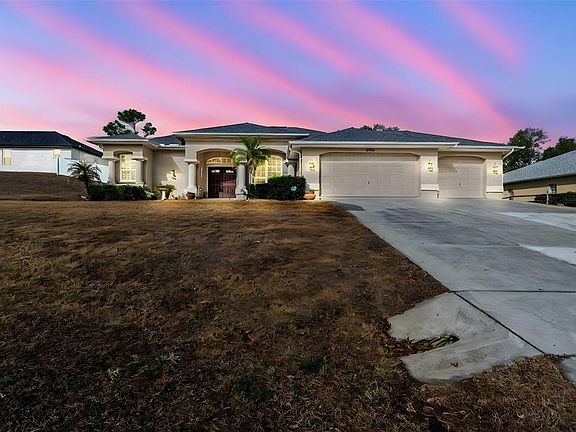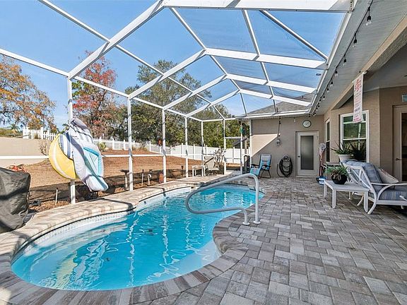 Experience timeless design, modern upgrades, and effortless style with this exceptional 3-bedroom, 2-bath pool home offering 1,960 square feet of living space, ideally situated on a large 15,000-square-foot lot along the 4th fairway of Oak Hills Golf Course. Located on a quiet street with NO HOA and NO CDD, this home delivers privacy, space, and peace of mind in a highly desirable Spring Hill setting. Major recent upgrades provide long-term value and confidence, including a new roof, new windows, new vinyl fence, new pool heater and pump, and an expanded driveway. Additional exterior features include in-ground sprinklers, outdoor ceiling fans, and mature surroundings that enhance the home’s tranquil atmosphere. Stepping inside, you’ll appreciate the open great room layout, designed for both everyday living and entertaining. Sliding glass doors create a seamless indoor-outdoor connection to the expansive screened lanai, showcasing a west-facing heated pool. The early afternoon and sunset views are unmatched. The pool also features therapeutic jets, creating a true backyard retreat. The thoughtfully designed split floor plan offers privacy and functionality. A formal dining area adds flexibility, while the kitchen provides ample cabinetry, workspace, and a granite desk area ideal for a home office or planning station. The spacious primary suite includes dual closets and an en-suite bath with dual sinks, a soaking tub, and a walk-in shower. A convenient pool bath allows easy access to outdoor living without interrupting the home’s flow. With a quiet neighborhood, large lots, golf course views, and extensive updates already completed, this home offers comfort, lifestyle, and value rarely found together. This is a true Florida pool home ready to be enjoyed year-round. Schedule your private showing today!