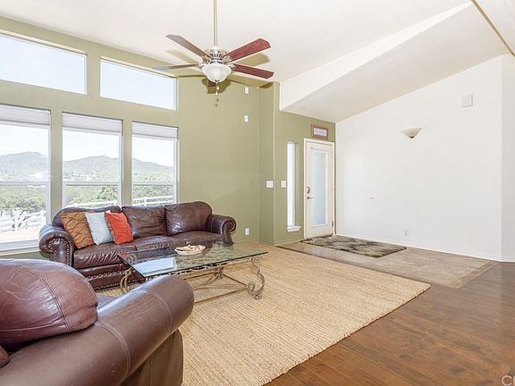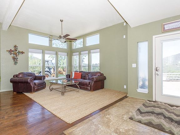 This home is gorgeous inside. Enter though the porcelain title foyer. High ceilings open up the spacious sitting room and large dinning room. The floors are 5/8" thick dark real wood. There are many windows in this room as well as throughout this entire home. The magnificent views can be seen from about every room in the house. The living room has a propane fireplace providing heat and ambiance. Looks out across the 35' x 50' cement patio, fenced with wrought iron and shaded by a 20' x 40' cantilevered patio cover. Entertainment to the max with a fire-pit,a pool table and patio furnishings. The upgraded kitchen has beautiful counter tops and a breakfast nook,Wood cabinetry and a walk in pantry. The master bedroom provides a toasty fireplace in the bedroom area and an additional sitting area. The master bath has a sunken Jacuzzi tub made for two and a walk in shower. Outside--all usable 5.3 acres enclosed with white vinyl fencing and cross fenced. A water purification treatment system at the well. The roof was replaced 5 years ago and has a labor and material replacement warranty for 50 years. Bosch water heater on demand with warranty. This home has an automated generator that switches the power source if the electric goes out. The footings under this home are beefed up for ultimate safety. The only way you can tell this is a manufactured home is by the word on the paperwork. Top notch home! Call today