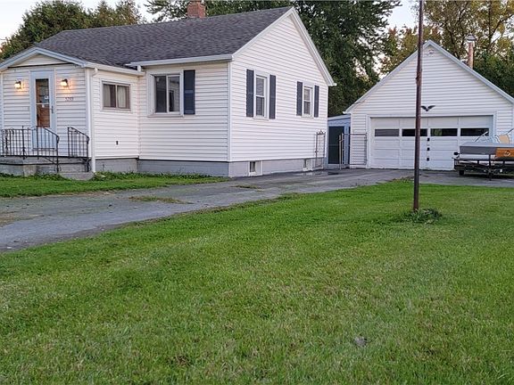Large fully fenced rear yard, 2 car detached garage, circular driveway, full and dry basement 2 bed, 1 bath home with enclosed front entry, rear entry and bonus 3 season room off of garage. This home has a lot to offer in the perfect location just outside of Batavia, and only 15 min to the thruway.