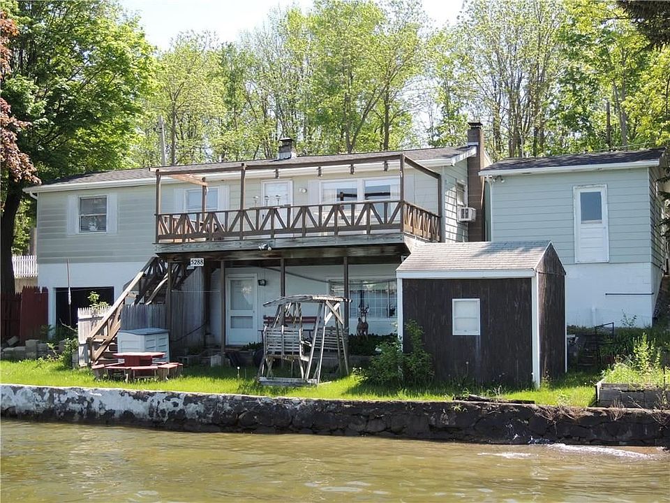 Enjoy year round living on Conesus Lake. Watch gorgeous sunsets from the large deck of this 3 bedroom, 1 1/2 bath, 1,288 square feet ranch. In the winter, keep warm and cozy in the large family room with freestanding wood fireplace, Cathedral Ceilings. One car garage with plenty of outdoor parking space. Big, 75 foot frontage. Brand new gutters. Make this your dream waterfront home!