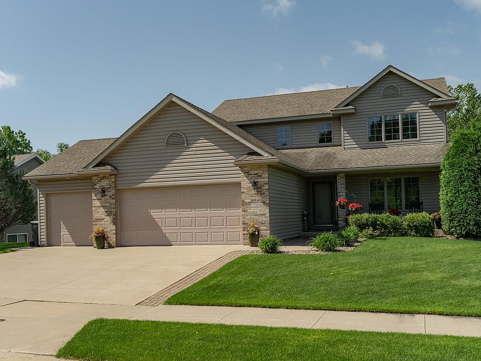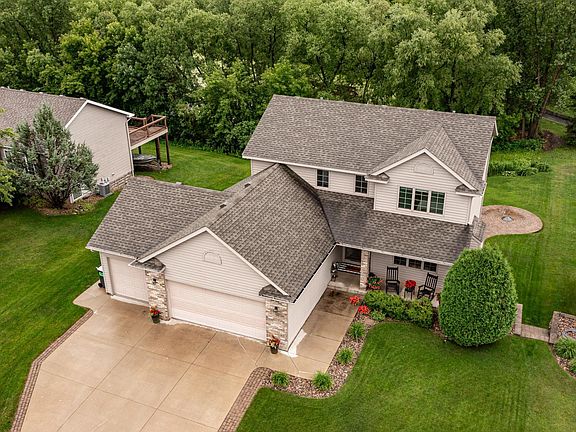 This inviting 4-bed, 4-bath, 3-stall, 2-story is appointed on a well landscaped lot backing up to wooded land complete w/ pond, trails & a park. Your summer will be complete w/ coffee on the front porch, grilling on the sunny deck, dining al fresco on the shady back patio, and evenings around the terrace firepit. The main floor’s living area is highlighted by a fireplace & warm decor leading into a dining area. The kitchen includes a dinette & breakfast bar, SS appliances & tiled floor. A powder room & mudroom/laundry complete the level. An open staircase leads to the upper level where you’ll find the primary bedroom w/ a private ensuite bath & walk-in closet. 2 more nice-sized bedrooms & full bath share the floor. The walkout lower-level’s family room was made for relaxing & entertaining w/ large multi-use spaces & access to backyard amenities. On this floor guests will appreciate the privacy of the large 4th bedroom & extra full bath. New furnace, A/C & water softener installed 2024!
