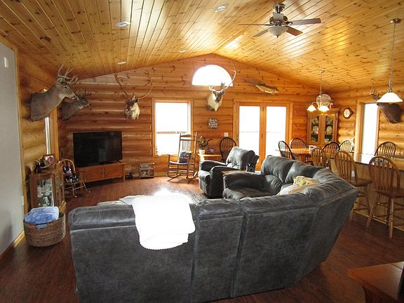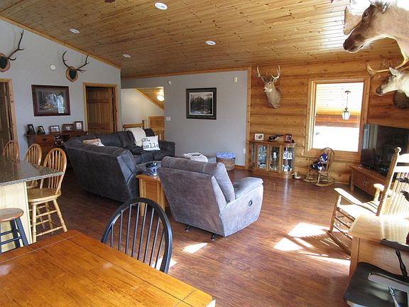 Beautifully maintained 3+ bedroom, 2 bath Anderson log home on 18 gorgeous acres. Located just minutes north of Bemidji. Over 2600 square feet of living space and a 1200 square foot garage. Walkout lower level, amazing landscaping with this fully irrigated yard. Home has 3 sources of heat: forced air gas, forced air electric and an electric boiler. Not to mention the wood stove in the lower level! Extra storage in the attached lean to and there is also a sauna! The land is a great mix of open field and beautiful trees with many options: hobby farm, fantastic hunting, potential development. (Note: smaller 3rd bedroom doesn't have a closet.)
