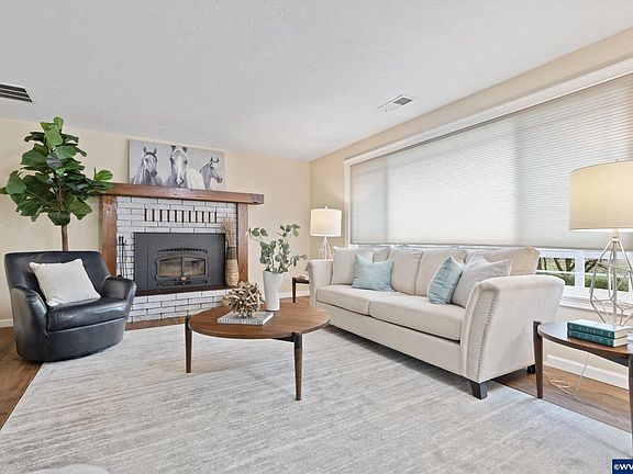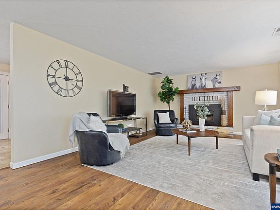 Welcome home to your hard-to-find small acreage retreat, perfectly priced and ready for you to move in! Perched on a hilltop with wonderful valley views, this one level gem offers the perfect blend of comfort and a serene lifestyle surrounded by expansive farms and forests. Picture yourself unwinding in the spacious living room, where a cozy fireplace and stunning scenery set the tone for relaxing evenings.