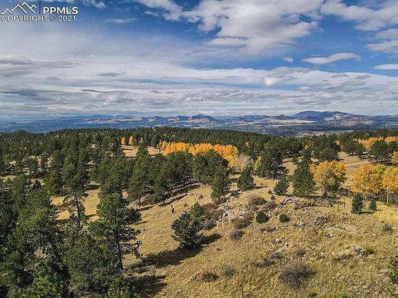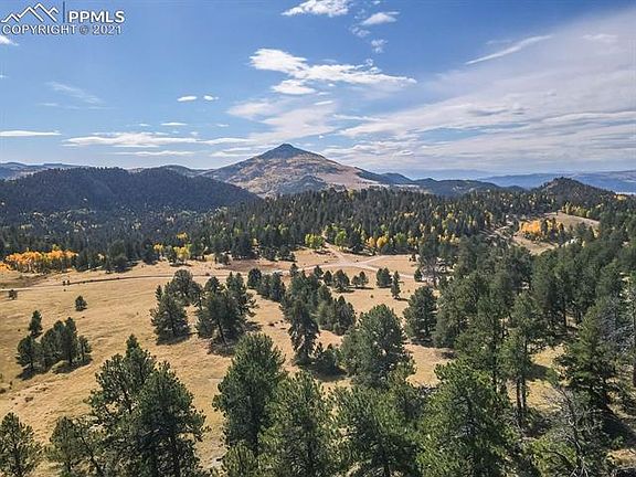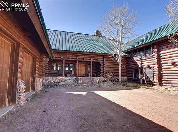 Incredible custom, rustic style full-log mountain home located on 70 private, yet easily accessible acres, of majestic, breathtaking land with 360-degree views of Pikes Peak, the Sangre de Cristo Mountain Range, and Mt. Pisgah. This ranch home has always been a 2nd home, and is just a 2-owner home! This home was built for entertaining with private bedroom/bathroom suites with deck access for each guest to take in the breathtaking views and scenery; corporate retreats, large gatherings, and events are all doable. Customized ADA access with a ramp from the garage, elevator to the 2nd floor (currently not in use) wheelchair width doors, and customized bathroom. The main floor includes a large living area, formal dining, and entertaining space surrounded by a cascade of doors and windows, all centered around a large wood-burning fireplace with multi-point access to exterior entertaining space, with custom handmade cabaret tables. Large gourmet kitchen showcases new granite tops, cherry cabinetry, beverage fridge, serving bar, extra cabinetry storage, a counter-bar, and a breakfast room surrounded by windows with access to a deck overlooking Pikes Peak. Owners suite is located on the uppermost level with stunning views. It boasts a private deck which overlooks the Sangre de Cristo Range, a wood-burning fireplace, 2 full bathrooms for each owner, and an attached office w/ an additional fireplace. The home has newly refurbished and restored logs that have been corn blasted, stained, and sealed, all new composite decking, a new metal roof, 5 new high-efficiency furnaces, and brand-new granite countertops in the kitchen w/ all new stainless-steel appliances. These owners have taken meticulous care to make extensive major repairs to this majestic home. Boasting the best views in Teller County; this property is worth a look!