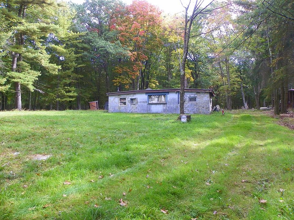 Situated on approx 1 level acre, this camp is a" diamond in the rough" is waiting for your TLC. Living room, kitchen, 3/4 bath, bedroom, and an additional large unfinished room that could be used as an additional bedroom. 2 story 12x16 shed offers ample room for storage. Well and new holding tank. Property now is in compliance with Harmony Township sewage ordinance. Cash offers only.