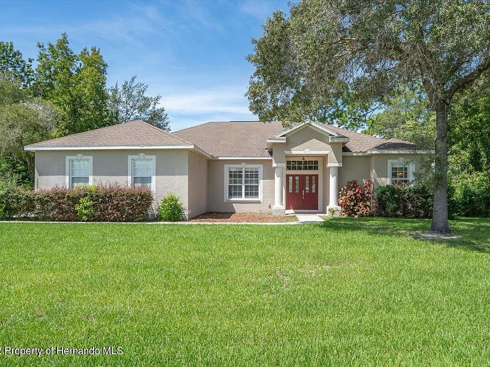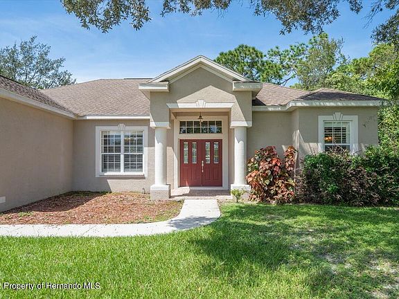 Active with contract Gorgeous and private upgraded home built on the Oak Hill Golf Course with three bedrooms, two baths and so many extras like tray ceilings, plantation shutters, huge lanai, stainless steel appliances, granite counters, beautifully designed, unique architecture throughout! Large, .36 acre yard with fenced backyard over looking Oak Hill Golf Course! NEW A/C 2019! Located in the heart of town, close to shopping, hospitals, movies, and even more up and coming restaurants and just a few minutes to jump on the Suncoast/Veterans Expressway to be in Tampa in under an hour!