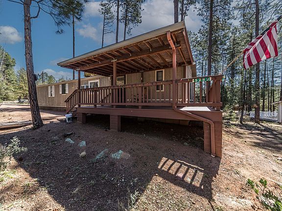 PRICE IMPROVEMENT! MOTIVATED SELLER! Escape to the mountains! This delightful 2 bedroom, 2 bath split floorplan home is nestled on over a third of an acre, offering the ideal setting for both full-time living and weekend getaways. Immerse yourself in outdoor living with the large deck that wraps around three sides of the home, providing ample space for relaxation and entertainment. Move in with peace of mind knowing that this home boasts a BRAND-NEW ROOF completed 4/24 with transferable warranty. Ample parking space available, accommodating guests or multiple vehicles is a breeze. Two sheds in yard, one has power. 3 wall AC units. Home will be sold partially furnished and includes 3 flat screen TV's.