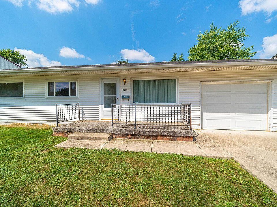 This is THE ONE! Looking for a GREAT RANCH home? 3 BR 1.5 baths, newer HARDWOOD floors in LIVING ROOM and KITCHEN! Enjoy your new CHARMING FRONT PORCH. The Living room is cozy with GREAT NATURAL LIGHT from the large window. Flow into the OPEN KITCHEN: EAT IN SPACE and hardwood floors, newer countertop! 3 Bedrooms with nice closet space. Tub Shower in Full Hall bath. NEWER WINDOWS! FENCED BACK YARD, backing to wide open space! Oversized one car GARAGE with lots of storage. FINISHED LOWER-LEVEL with NEW CARPETING in main area that flows to the BUILT IN BAR area. HALF BATH down. Sep laundry area and additional workshop /storage or play room. Enjoy creating your OWN SPACE with your new personal touches!
