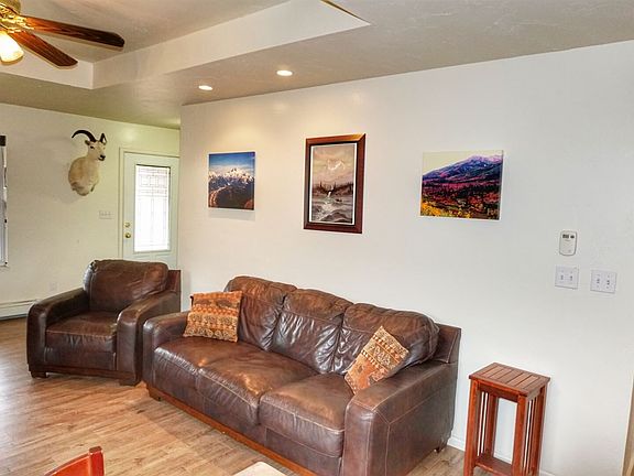 This three bedroom, three bath, 2372 sqft residence is located on a quiet cul-de-sac in the Town of Collbran with views of the surrounding mountains. The ranch style home has a newly finished full walkout lower level will access to the picket fenced yard. Highlights include a spacious family room with a media center and a wood burning stove, a second laundry room, a master suite on the main level, a formal dining room with French doors and a Juliette balcony, large windows to let in the natural light, a gas fireplace in the living room, ceiling fans and a beautiful kitchen with alder cabinets and access to a covered back deck - perfect for your grill and outdoor dining. The area is near the Grand Mesa National Forest making it ideal for any outdoor enthusiast. Nearby activities include camping, fishing, downhill skiing, cross country skiing, snowmobiling & hiking on miles of trails.