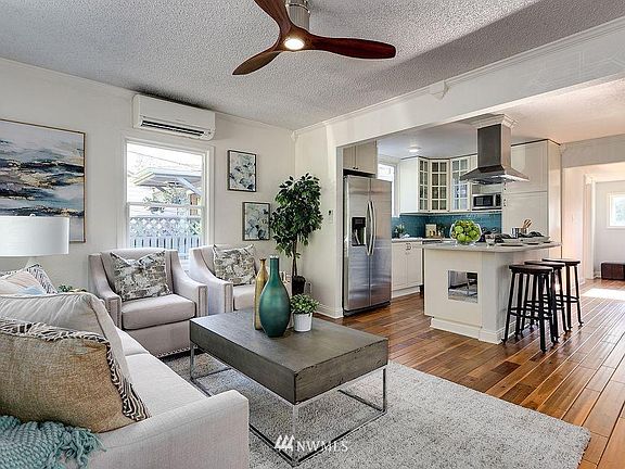 Conveniently located in Leschi -- this charming Seattle Craftsman has a versatile floor plan that will meet almost any need. Pride of ownership really shows throughout. Updates include roof (2014), siding (2018), flooring in lower level (2018), deck (2017), a tankless water heater and 3 mini-splits for heat & AC. Kitchen with gas range, hood, & soft-close drawers. 2 bedrooms, bath with shower, living, kitchen and den/guest bedroom on main. Bedroom, den/guest bed, rec room, storage rooms, bath with shower, laundry and separate entry on lower. Could be made into 2 living spaces or kept as one. Large, sunny, level backyard is fully fenced and ready for BBQs and gatherings. Planter boxes and double-door shed will delight your green-thumbs.