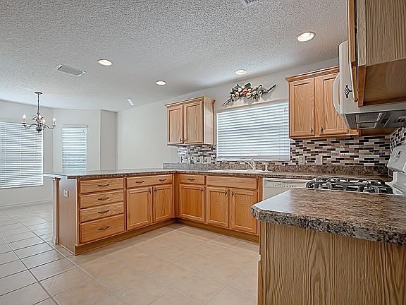 The BOND IS PAID on this LOVELY 3/2 ROYAL PALM DESIGNER that sits on a quiet cul-de-sac in the convenient Village of Belvedere. Enter the home through the covered FRONT PORCH with sitting area - and you're greeted by a full-glass storm door & front door with sidelight. The generous foyer has a coat closet and tile floors that continue into the kitchen, laundry room and both bathrooms. The spacious kitchen has oak cabinetry with crown molding, hardware & pull-outs, DOUBLE PANTRY cabinet, bevel-edged LAMINATE counters, GLASS MOSAIC backsplash, bisque appliances including a GAS range and side-by-side refrigerator, convenient breakfast bar & large casual dining nook w/bay window. Off of the kitchen is the carpeted formal dining room & LARGE living room with vaulted ceilings and sliding glass doors to the screened lanai. The carpeted master bedroom has TWO CLOSETS, an en-suite bathroom w/bevel edged counters, DUAL SINKS, vanity area, plus a separate toilet & shower area w/window. An archway from the living room leads to the guest bedrooms and guest bathroom with TILED tub/shower and a linen closet in the hallway. One bedroom has sliding glass doors that open to the screened lanai and notice the large backyard. The laundry room, off the foyer, features cabinets above the washer/dryer for storage, a utility sink plus a convenient folding counter with cabinets below. A neutral color palette awaits your personal touches here & this home is close to shopping, recreation and the Belvedere Library!