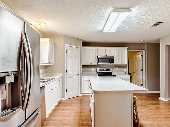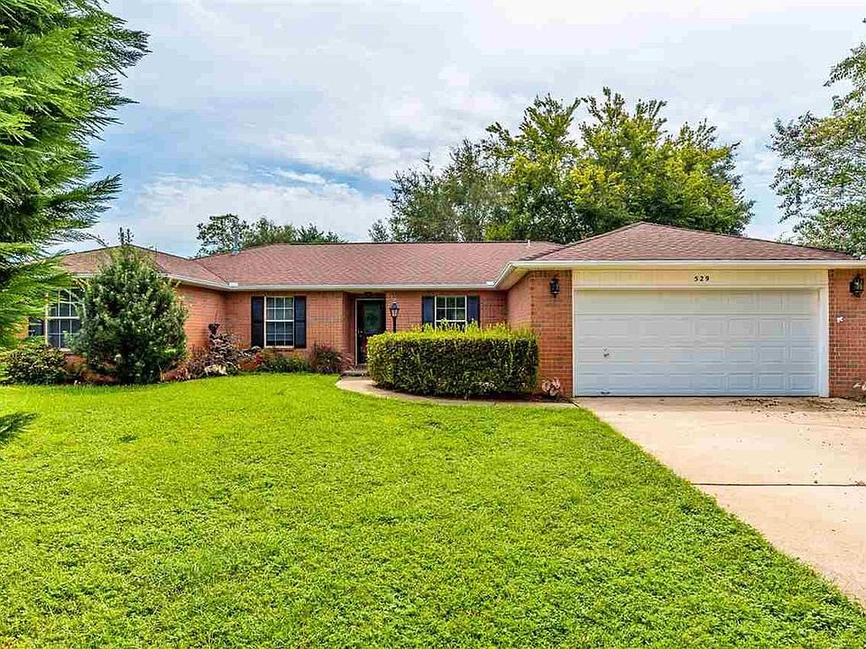 This 4 bedroom split plan home has a brick exterior, and has numerous gathering areas- Great room (20" tile set on diagonal), formal living room, formal dining room, and huge covered screened porch. The kitchen has tons of cabinets and counter space with stainless appliances, an island, pantry, and stubbed out for gas. Master Suite has 2 walk-in closets, separate shower, and a garden tub. Other features include a sprinkler with well, workshop/storage outbuilding with power, privacy fence, and a lush privacy fenced backyard. Located close to the white sand beaches of Perdido Key and the Naval Base, within Hellen Caro school district and there is a County park with playground, walking trail and picnic area right around the corner.