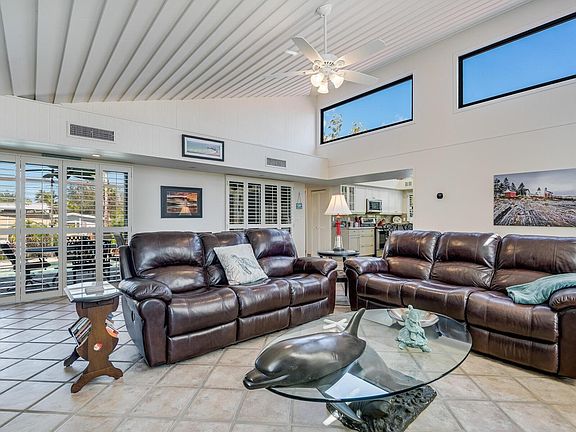 The ultimate coastal lifestyle awaits in this contemporary canal-front home on north Longboat Key, where you'll enjoy your own private dock and boatlift along with convenient access to the bay and Gulf of Mexico. You also will be just a short stroll from public access to the beautiful Gulf of Mexico beach. Multiple glass sliders throughout the home open to a sizable screened lanai with a pool overlooking the canal, providing a perfect place to relax, entertain and catch glimpses of dolphins and manatees. Located on a quiet street and lot designed for privacy, the 2,808-square-foot four-bedroom, three-bath home features high ceilings, an open floorplan with expansive living spaces and lots of windows and skylights for abundant natural light. The inviting kitchen features granite counters, stainless-steel appliances and a breakfast bar and the sprawling great room has a gas fireplace. You'll find a relaxing retreat in the master suite, which has a large bath with dual vanities, a walk-in shower with frameless glass and separate soaking tub. Overnight visitors will be right at home in the guest bedrooms, including one with an en-suite bath that has two vanities and a walk-in shower. The home also has an indoor staircase to a private rooftop deck for savoring canal views and seaside breezes. In addition to being close to restaurants, the home is a short drive to Joan M. Durante Park, which offers scenic, shaded nature trails and a playground, as well as Bayfront Park, where you can play tennis, pickleball and take a stroll along the bay. Call today to schedule an appointment to see this unique 4BR Longboat Key waterfront home.