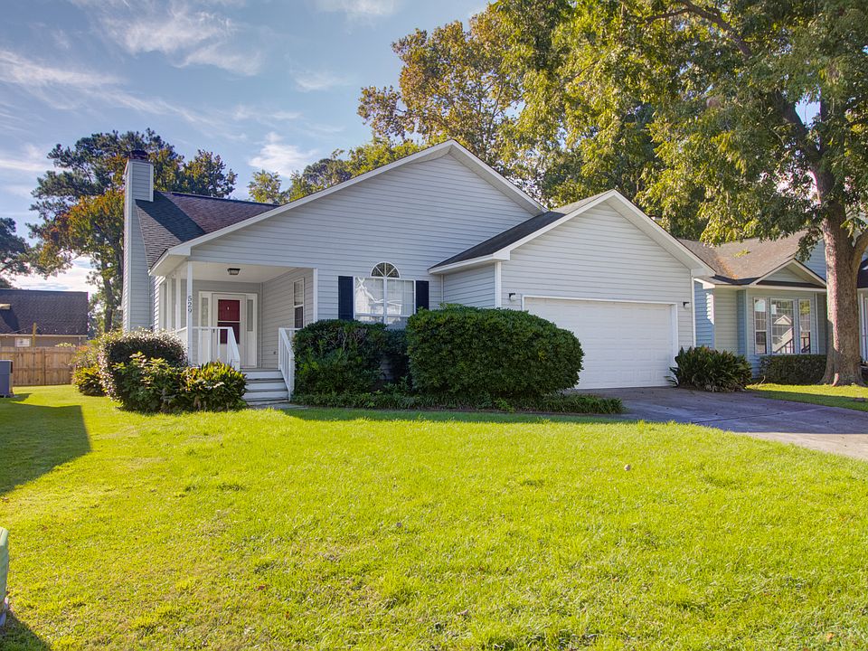 Charming cottage located in the heart of West Ashley. This one story home has a great open floor plan with solid surface floors, vaulted ceiling, wood burning fireplace, lots of light right when you walk in. The kitchen is big with an eat in dining area. Separate laundry room off kitchen and a big two car garage. There is a big primary bedroom with an ensuite bathroom and a large walk in closet. The other two bedrooms share the hall bathroom. Outside you have a great screened in porch with a good size fended in backyard. The owner has recently put in a new HVAC and water heater. The location of this home is close to everything with you being only minutes from downtown Charleston, the airport, schools and shopping. Do not miss your chance to live in the middle of everything. Pets are negotiable and tenant pays all utilities.