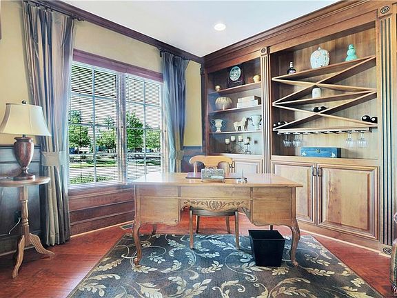 Custom transitional home with a European flair, features high end quality upgrades,exquisite mouldings and built-ins, and a fresh palate with soft shades.Two story entry,office with custom bookcases, wine rack, dining rm. with tray ceiling, picture frame and columns, inviting Two story gathering rm. with stone FP, gas logs, coffer ceilings and cottage windows, vltd. sun rm with window surround, chefs kitchen with custom cherry cabs.,GE Monogram appliances, refrig., granite counter tops, islnd., and breakfast rm. that opens to the maintenance free deck The Master suite is bright, beamed ceiling, his and her closets,spa like bath just the right size. First level laundry with cabinets for storage The second level features two more bedrooms, loft pull down attic storage, full bath and a fabulous media rm with TVs to remain,wine cooler,preparation bar,automatic window shades, granite counter tops, such a great area for entertaining all of your friends. The lower level is walk out and features 10' ceilings, a recreation rm., bedroom with lg. closet, full bath , flex rm., There is walk in storage Executive Pella windows throughout This home is a Gem Former model home for Bel Arbor