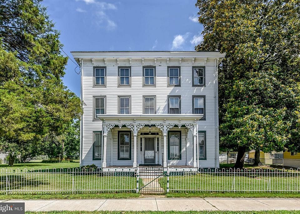 The Captain Marshall House, Circa 1870, has long been one of the most distinctive homes in North Chesapeake City, built facing the canal. Sit on the front porch and watch the ships go by or view a town fireworks show without driving anywhere. As you enter the gate through the hairpin fence don't forget to pull the original doorbell to the right of the door. The front door still has the original molded panels and the handsome walnut post and banister which retain their original stained finish. With 9 foot ceilings, with oak and pine floors, the center hall has a library on one side and a parlor on the other which leads to the dining room. A small kitchen is adjacent to the dining room and a large 20th century family room. A back stairway as well as the center hall stairway leads to the family spaces including 5 bedrooms and two full baths, one with original tub and sink. Views of the canal can be seen from these two upper levels. The now closed-in garage space serves as a laundry room/workshop and has a finished loft space above with plumbing that could convert to an in-law suite. The Marshall House still retains its original double lot which the town says could possibly be subdivided. It snuggles up to a town park and picnic pavilion across the back alley and has room to park two cars.You are just a block from the canal, walking/biking trails and walking distance to Schaefer's Canal House. This home has architectural details only found in older homes. With some updates to modernize this home, you can also own a piece of history.