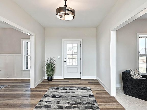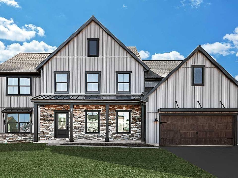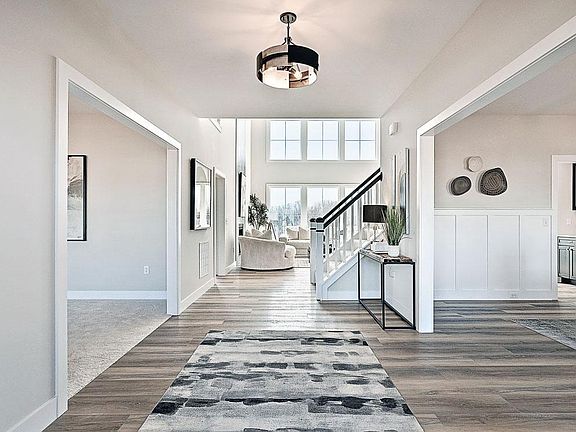 Designer details abound in this stately 2-story home with craftsman style exterior and a welcoming front porch. A 2-car garage leads to the mudroom with built-in lockers and a large pantry and closet, perfect for storage. To the front of the home is a versatile living room and an elegant dining room with wainscoting and chair rail detail. A convenient butler’s pantry lays between the dining room and the open kitchen with quartz countertops, tile backsplash, upgraded stainless appliances and large center island. The sunny breakfast area provides access to the rear patio. Adjacent to the kitchen is the 2-story great room featuring a cozy gas fireplace with tile surround. Tucked away from the main living area is a guest bedroom and full bathroom. Upstairs, the well-appointed owner’s suite with cathedral ceiling boasts a private bathroom with freestanding tub, two separate vanities, a tile shower, and an oversized closet. Also on the 2nd floor is a convenient laundry room, 3 additional bedrooms, and 2 full bathrooms.