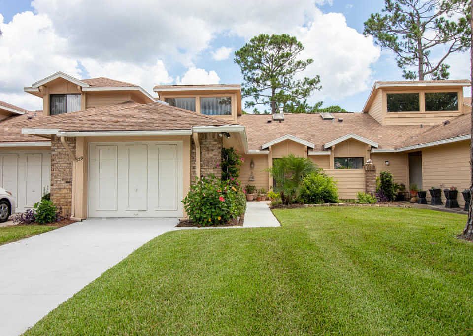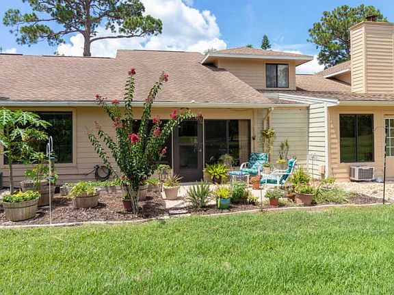 Gorgeous, single story, 2 Bedroom townhome in Pelican Bay on a quiet cul de sac, overlooking the golf course and canal. Everything has been done here! Beautifully renovated kitchen with 2 pantries, room for a table and large picture windows. Ceramic Tile in kitchen and baths, Wood Flooring through Living Room and Bedrooms. Both baths renovated. Open floor plan, high ceiling with transom windows, enclosed tiled Florida Room overlooking golf course and canal. Views of golf course from master suite and living room. Enjoy nature in your own backyard. See turtles and friendly birds. Close to shopping and restaurants. Short drive to beach, airport, Orlando and more