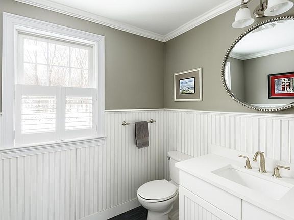 - Bth1 Dscrp: Flooring - Stone/Ceramic Tile, Countertops - Stone/Granite/Solid, Bathroom - Half, Wainscoting