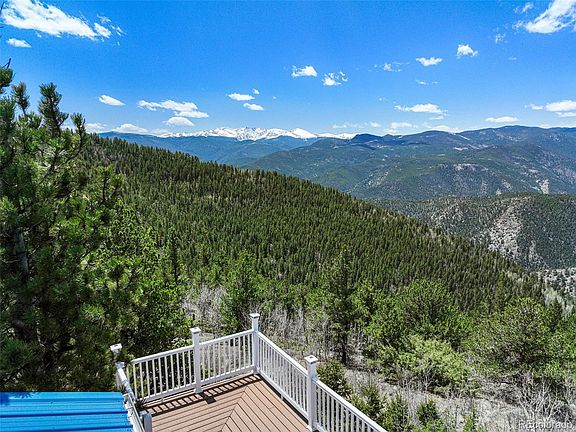 Escape to your dream home in the Colorado mountains! Nestled at an elevation of 9,400 feet, this stunning residence offers unobstructed mountain views, including the majestic Mt. Blue Sky (Mt. Evans). The expansive wrap-around deck, reconstructed with Trex in 2019, provides an idyllic setting for entertaining or simply basking in the natural splendor.