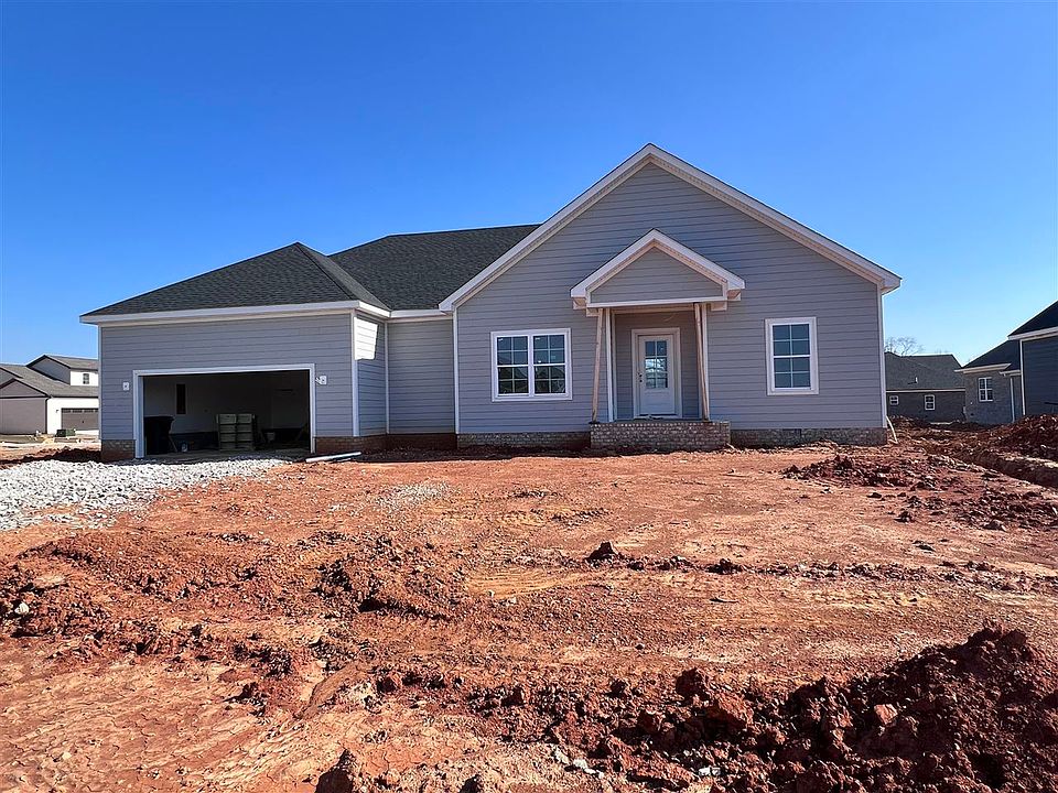 Welcome to Carter Crossings, where quality craftsmanship meets modern design! This stunning new construction home sits on a spacious corner lot and boasts 1735 square feet of living space. With 4 bedrooms and 2 bathrooms, this home offers ample space for a growing family or guests. Step inside and be welcomed by an open floor plan with soaring cathedral ceilings in the living room, providing a light-filled and inviting atmosphere for gatherings and relaxation. The living room flows seamlessly into the kitchen and dining area, making it easy to entertain while preparing meals. The kitchen features sleek granite countertops and top-of-the-line appliances, making meal prep a breeze. The home also features engineered hardwood floors throughout, giving it a warm and inviting feel. The spacious master bedroom has a luxurious en suite bathroom and plenty of closet space. The additional three bedrooms are perfect for family or guests and share a second full bathroom. Step outside and enjoy the fresh air on your covered back porch, perfect for outdoor dining or simply enjoying the scenery. The two-car garage provides ample parking and storage space, and the landscaping has been meticulously designed to enhance the beauty of this already gorgeous property. Located in the desirable Carter Crossings subdivision, this home is just minutes away from shopping, dining, and entertainment. Don't miss out on this incredible opportunity to own a brand new home in this thriving community!
