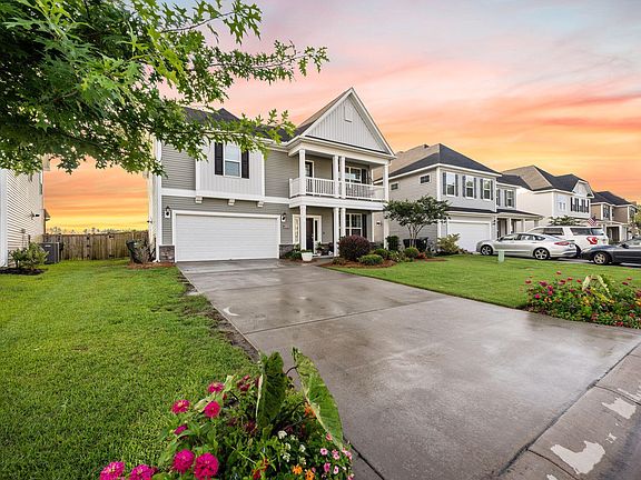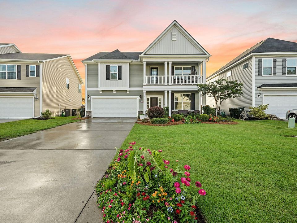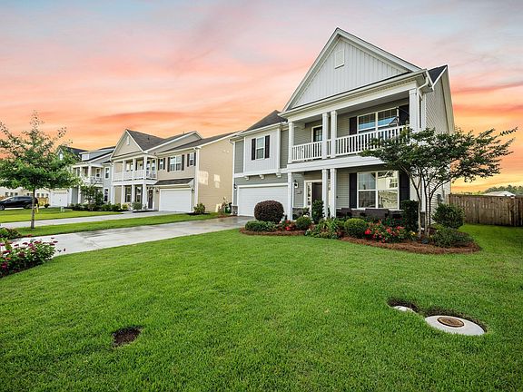 You will fall in love with this Charleston style home featuring double front porches and its incredible curb appeal.This meticulously kept three-bedroom home includes a spacious loft, a butler's pantry, a formal dining room, and a light-filled sunroom. LVP flooring flows throughout the main level, complemented by wood stair treads leading to the upstairs.In the owner's suite, you'll find a large walk-in closet and an oversized bathroom that connects directly to the laundry room for added convenience.The backyard is a true showstopper with an extended patio, lush landscaping, a fenced yard, and peaceful pond views perfect for relaxing or entertaining.Located in the highly sought-after master-planned community of Cane Bay, this home sits in Lochton, which features resort-style amenities including a pool, park, and pavilion. Cane Bay also offers a network of golf cart trails and is home to the largest YMCA on the East Coast.