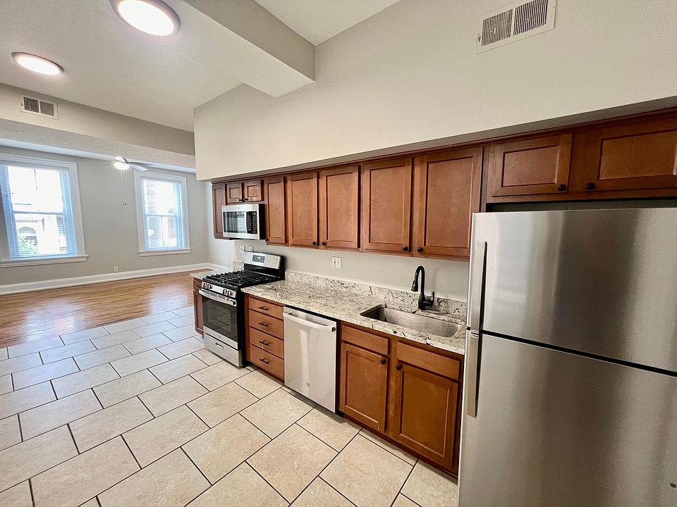 Updated 3-Bedroom apartment in Pendleton/OTR. One block from all the Pendleton/OTR has to offer! Available September 1st. -Updated kitchen with granite countertops and BRAND NEW stainless steel appliances -Central Air -Recently refinished hardwood floors throughout -Three spacious bedrooms -On-site laundry -Recently updated outdoor common area w/ tables, chairs, gas grill, etc Please reply to this listing to schedule a showing. You will not be disappointed! Owner pays water & trash removal.