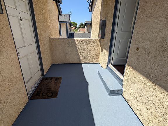 Welcome to this beautifully renovated 2-bedroom, 2-bathroom upstairs unit in a charming Tudor-style complex. Enjoy the privacy and quiet of single-level living with no downstairs neighbors. The interior is fresh, bright, and modern, featuring new paint throughout, smooth ceilings with new recessed lighting, and stylish new hardware. Both the kitchen and two full bathrooms are appointed with elegant granite countertops. The bathrooms are fully updated with new shower fixtures, toilets, and vent fans. This rental includes an oversized 2-car garage directly below the unit, as well as a large, concrete patio a rare find! Convenient on-site laundry facilities are also available. This clean, spacious, and move-in-ready home offers the perfect blend of comfort and modern updates. Don't miss out! Owner pays for Water, Trash, and Gardener. Tenant pays for Gas and Electric Services