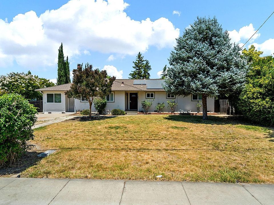 Nearly a half an acre of land with so many possibilities! This single story, 3 bedroom and 2 bath, 1,900+ sq ft home is really something to see. Larger sized bedrooms, great sized bathrooms, beautiful hardwood floors, open dining and family combo room, brick fireplace, separate living room with wood stove and updated windows through home. Owned Solar! Sparkling gated Pool in massive backyard which screams endless possibilities! Outbuilding in rear of home, RV Parking, Boat parking, mature trees, and so much more! This is a rare find so call today!