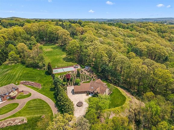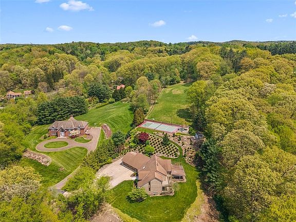 What a setting to come home to each and every day. Spectacular vistas from all angles. Ground level deck leading from the great room all across the rear to the in home office. Deck off the Owners' suite for views of mature trees and landscaping. Open flow on main level to include a two story entry, living room, dining room, great room, eat in kitchen, office, laundry, and walk in pantry. Second floor boasts owners' suite, four large bedrooms and two additional baths, plus a finished room that was used as a flexible use workspace Lower level is a full footprint of the first floor to include a wet bar, gaming area, exercise room, media area, full bath, & two additional rooms, with closets, than can be used as bedrooms, craft rooms, office, or storage. Designed to include custom hardware & iron work that is unique to the property. Located in Fox Chapel 3 acre zone. Property is planted w/ deer resistant foliage & is fenced in. Tennis court has an adjacent Gazebo. Shed Incl. You are Home!