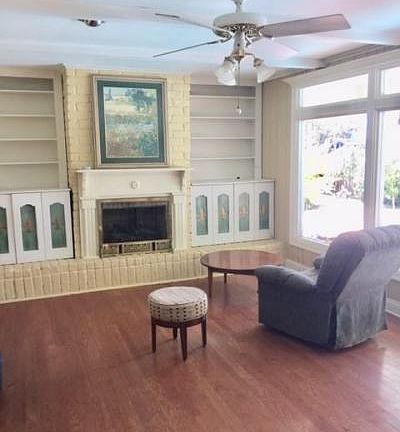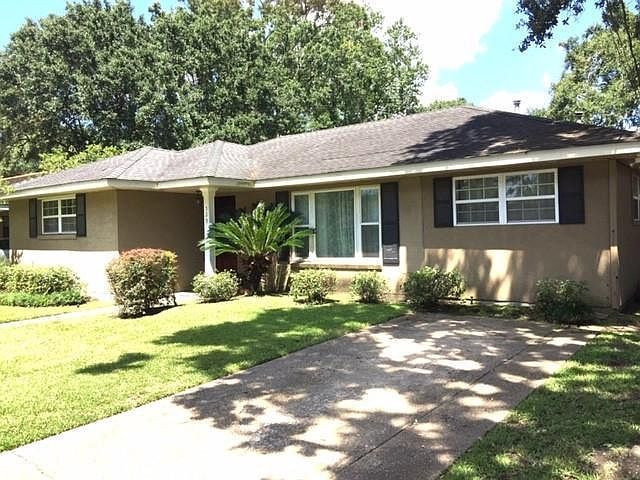 With all this heat come enjoy the pool. Home has original hardwood floors. Living room has cove ceiling. Kitchen has cement countertops & professional gas range. Den has fireplace a wall of closets & over looks inground pool. Tankless hot water heater. Flood zone X. Refrig. Washer, Dryer stay.