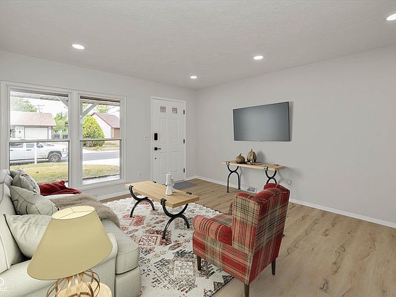 Wow! Wow! Wow! Completely renovated and gorgeous. Freshly painted inside and out--even the garage. New luxury vinyl plank flooring, lighting fixtures & recessed lighting, hardware and interior doors throughout. New kitchen cabinets, quartz countertops, sink, tile backsplash, fixtures. Brand new stainless steel LG appliances including electric oven-range, dishwasher, microhood, and refrigerator. Newer Amana washer and dryer in the separate laundry room off kitchen. The laundry room also has a door to back yard. Both bathrooms have been beautifully updated/upgraded including shower/tub with tile surround in main bath. The primary bedroom has two closets and a new ceiling fan with remote. All new windows and a brand-new sliding glass door to the patio. New garage door and garage door opener. Pull down ladder in the garage for attic storage. Concrete driveway. Newer roof is only five years old. HVAC is only three years old. Fully fenced, large backyard with large concrete patio. Close to schools, shopping, dining, parks and entertainment. Easy access to the interstate. All this in a nice, quiet neighborhood with no HOA.