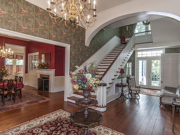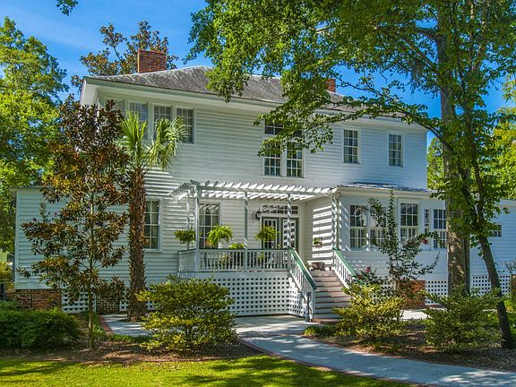 Beautiful southern historic home located in the heart of Walterboro. As you enter the front door into the foyer, on your right is the formal living room with a gas log fireplace. Off of the formal living room is a spacious study with lots of windows for natural light. In the foyer to your left, is the formal dining room that offers fireplace and a built in china cabinet. Off of the formal dining room is a sitting/breakfast area. From the dining separated by a swinging door is the kitchen. The kitchen offers granite counter tops, a center island, 6 burner gas stove with oven, a separate electric wall oven with warmer, double sided refrigerators with freezer drawers below. Plenty of updated cabinets and lots of counter space. Off of the kitchen is a huge walk-in pantry that leads to the laundry room with a mud sink and a large closet. Off of the kitchen is the family room that leads to the back of the foyer. Located in the back of the foyer is an updated half bath, a closet under the stairs for extra storage. There is a master bedroom with a fireplace, walk-in closet, ceiling fan and an updated master bath with double vanity, claw foot tub and separate tile shower. Downstairs all ceilings have bead board, original floors in all rooms but breakfast/sitting area, half bath and laundry room which have been updated with ceramic tile. Crown molding throughout the downstairs and tall baseboards. As you go upstairs you will notice the large restored windows above a sitting area. Upstairs and to your right you have a large spacious bedroom with two closets and built in shelves. This bedroom shares an updated jack-and-jill bath with a double vanity and separate tub and shower with the second bedroom that has a fireplace and a walk-in closet. Next to the 2nd bedroom is an area being used as a play room but could also be a study or an office. The 2nd master bedroom is located on the left side of the upstairs with a gas log fireplace, ceiling fan and a walk-in closet. Master bedroom is also connected to a jack-and-jill bathroom to the 3rd bedroom located upstairs. The bathroom offers double vanity with tub/shower combo. The 3rd bedroom has a walk-in closet. All ceilings upstairs are smooth; there is crown molding throughout the upstairs and the high base boards also. This home was renovated and restored. All new electric, plumbing, and heating and cooling systems updated. On the back there is a nice porch with an overhead pergola. There is a detached two car garage with a finished FROG. FROG offers hardwood floors and full bath with a stand-up shower and a small porch. This home is immaculate and a must see. You will fall in love. Home comes fully furnished and all window treatments remain.